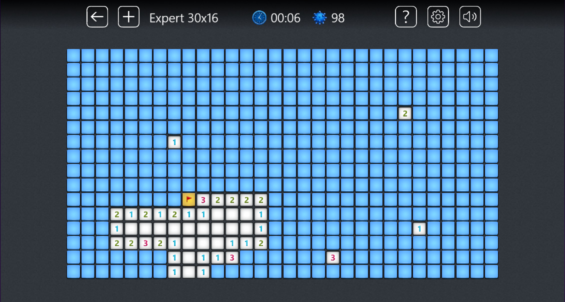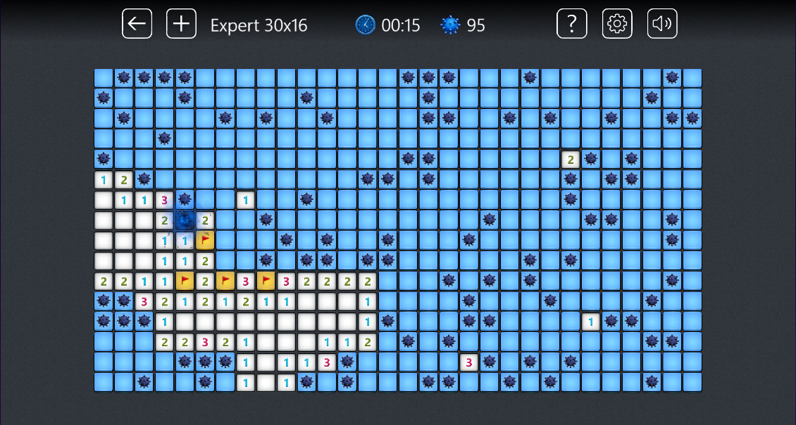 왼쪽 버튼으로는 블럭을 열 수가 있고 우측 버튼으로는 지뢰라고 확신하는 곳에 깃발을 꽂아 놓을 수 있습니다 만약 아닌 곳에 깃발을 꽂게 되면 그 즉시 게임오버가 됩니다