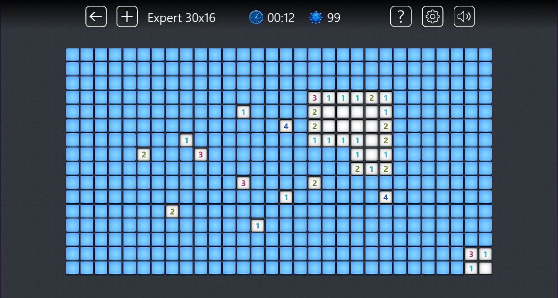 가장 처음에는 아무것도 단서를 얻을 수가 없습니다 이때는 바로 아무곳에나 눌러서 필드를 열어야만 합니다 바로 이때 처음에 지뢰를 눌러버린다면 어쩔 수 없이 처음 부터 다시 시작해야하지요