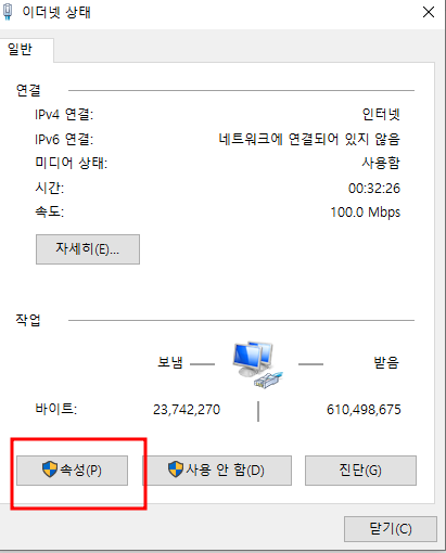 위와 같은 창이 나오면 속성으로 들어가줍니다