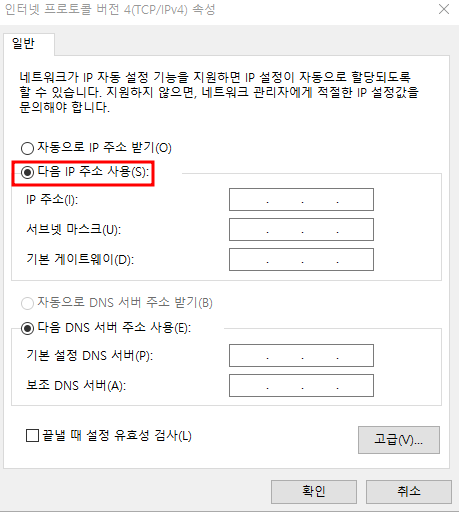 고정 IP 설정하는 방법 아이피를 고정하여 사용해야 하는 경우